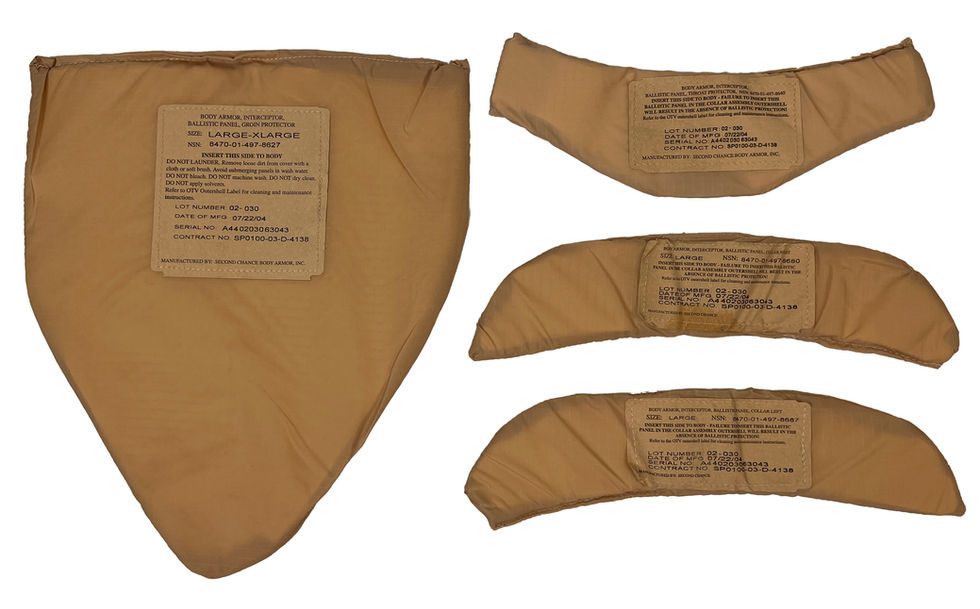 Includes the standard issue "gold flex" soft armor inserts, which perform between level II and IIIA standards.